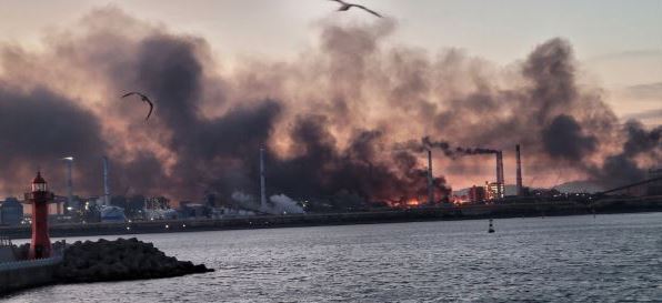 지난 2022년 9월 포스코 포항제철소에서 대형 화재가 발생해 검은 연기가 올라오고 있다. 독자 제공