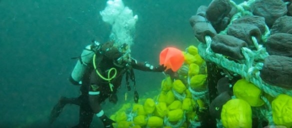 해경 잠수사들이 8일 제주 비양도 북서쪽 약 22㎞ 해상에 침몰한 부산선적 ‘135금성호’(129t급, 선망어선) 그물 thr을 수색하고 있다. 승선원 27명 중 13명은 구조됐으나 12명은 실종됐다. 한국인 선원 2명은 사망했다. 제주해양경찰청