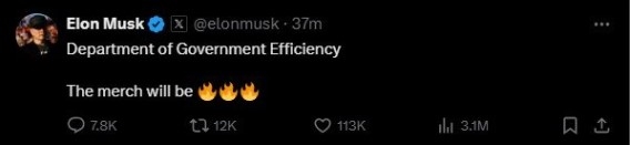 머스크는 이후 자신의 소셜미디어 엑스(X·옛 트위터)에 트럼프의 성명을 인용하며 "정부효율성부 상품(merch)은 활활 타오르는 불이 될 것이란 의미의 이모티콘 3개를 넣었다. 라마스와미도 엑스에 머스크의 글을 태그하고 "우리는 온건하게 가지 않을 것"이라고 화답했다.