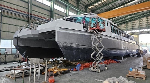 지난 달 마지막 건조 작업을 하고 있는 '한강버스' 모습. 서울시의회 국민의힘 한강버스 점검단이 지난 10월 31일 건조 현장을 방문해 건조 과정을 점검했다. 서울시의회