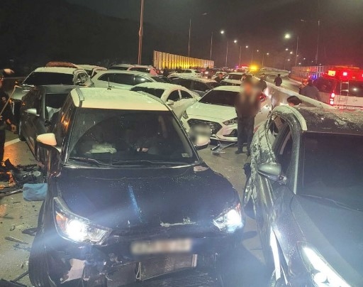 27일 강원도소방본부에 따르면 이날 오후 5시 49분쯤 409번 국도 원주시 호저면 만종사거리에서 심평사거리쪽으로 가는 도로에서 승용차, 승합차 등 53대가 추돌해 뒤엉켰다.