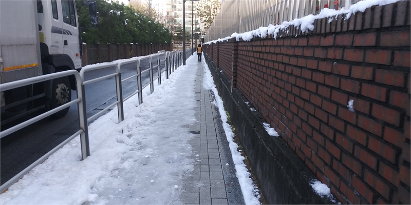서울 강서구 홈플러스 강서점(본점) 인근 경복여고 뒷길 눈 쌓인 모습. 정기홍 기자