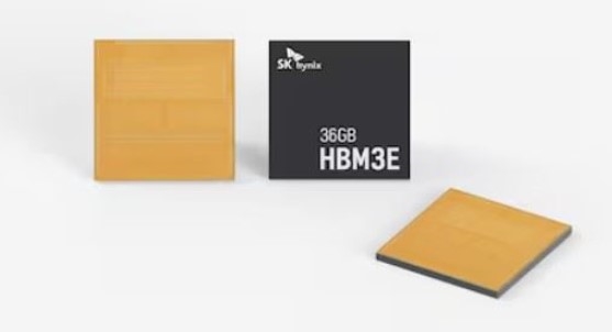 SK하이닉스가 개발한 12단 적층 HBM3E. HBM3E 현존 최고 용량인 36GB(기가바이트)가 구현됐다. SK하이닉스