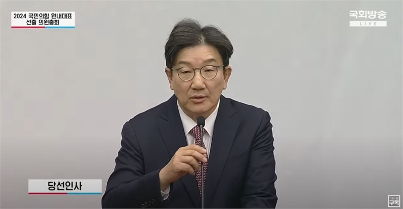 권 의원은 12일 국회에서 진행된 원내대표 선거에서 과반인 72표를 득표해 34표를 얻은 김태호 의원(4선·경남 양산을)을 누르고 당선됐다. 당 소속 의원 108명 가운데 106명이 투표에 참여했다.