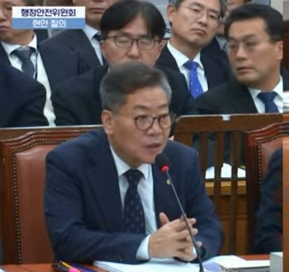 김용빈 중앙선거관리위원회 사무총장이 23일 서울 여의도 국회에서 열린 행정안전위원회 전체회의에서 의원 질의에 답변하고 있다. 국회방송