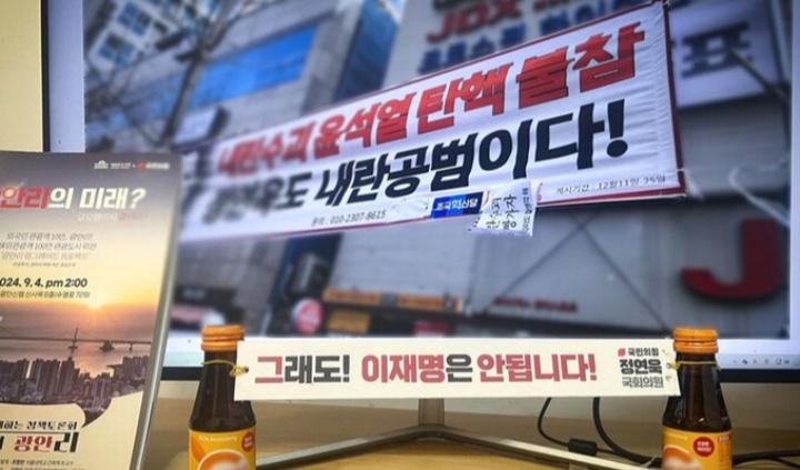 앞서 ‘12·3 비상계엄 사태’에서 비롯된 윤 대통령 탄핵 정국 가운데서 정치권의 현수막 문구 논쟁이 벌어졌다.