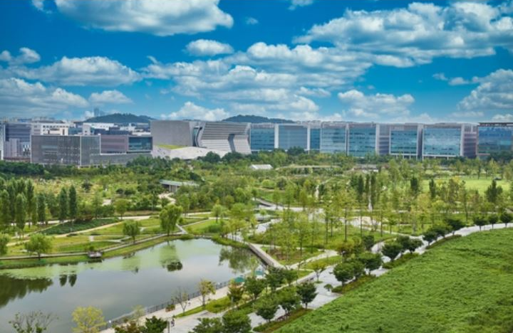 서울 강서구 마곡첨단산업단에 들어선 LG사이언스파크 전경. 오른쪽 건물들이 LG그룹 계열사 R&D 건물이고, 바로 옆에 서울식물원과 호수공원을 끼고 있어 근무여건이 최상급이다. 서울시