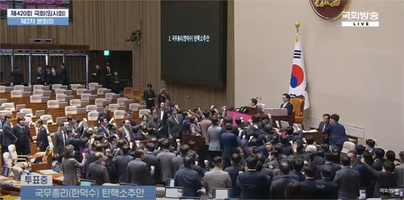 윤석열 대통령이 탄핵소추돼 직무가 정지된 지 13일 만에 대통령 권한대행의 탄핵소추안마저 국회를 통과해 연속 탄핵소추는 헌정사 초유의 상황이다. 이후 대통령 권한대행은 최상목 경제부총리 겸 기획재정부 장관이 맡는다.