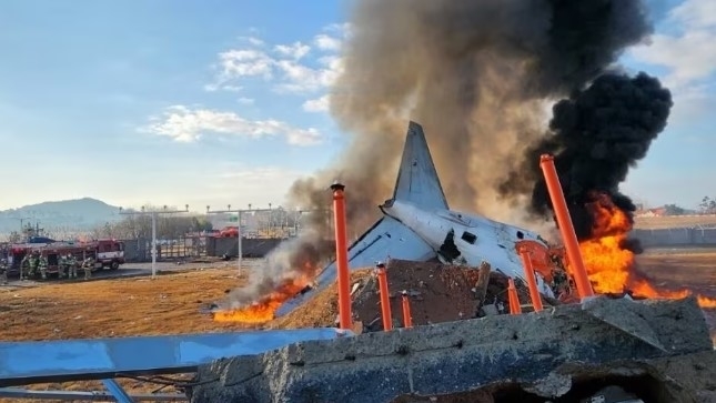 제주항공 7C2216편 여객기는 이날 오전 9시 3분쯤 랜딩기어(비행기 바퀴)가 펼쳐지지 않은 상태에서 무안공항 활주로에서 '비상 동체 착륙'을 시도하다가 외벽과 충돌해 기체가 화염에 휩싸였다.