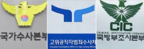 왼쪽부터 경찰 국가수사본부, 고위공직자범죄수사처, 국방부조사본부 로고. 이들 3개 수사기관으로 구성된 공조수사본부는 30일 윤석열 대통령에 대한 체포영장을 청구했다.