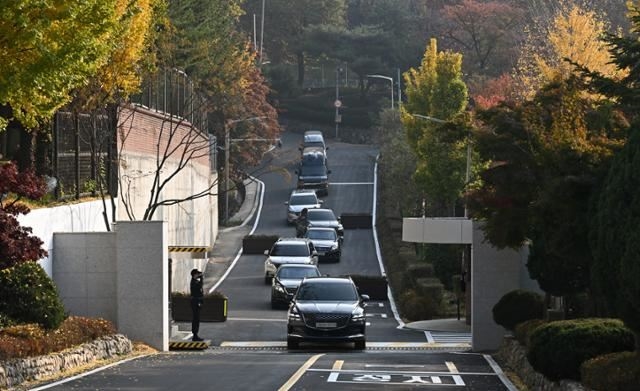 서울 용산구 한남동 관저 정문. 윤석열 대통령이 지난 2022년 11월 차량을 타고 첫 출근을 하고 있다. 대통령실
