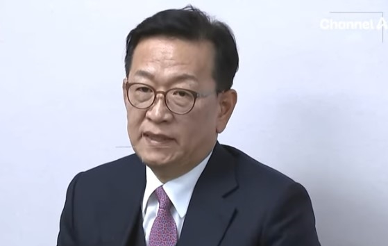 윤석열 대통령의 탄핵심판 법률대리인인 석동현 변호사가 지난 9일 외신기자 대상으로 한 기자회견에서 윤 대통령 탄핵 심판과 관련한 질문에 답하고 있다. 채널A