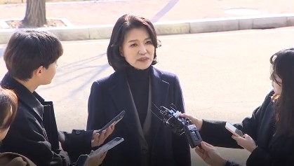 이진숙 위원장이 23일 헌재의 탄핵 기각 결정 직후 경기 과천시 방송통신위원회에 출근하면서 취재진에게 입장을 밝히고 있다. TV조선