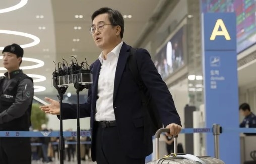 세계경제포럼(다보스포럼) 참석 후 24일 인천공항을 통해 귀국한 김동연 경기도지사가 언론에 다보스포럼 관련 브리핑을 하고 있다. 경기도