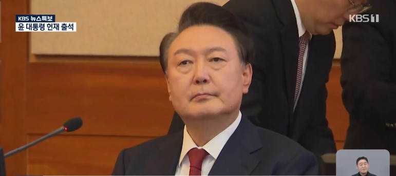 헌법재판소에 출석한 윤석열 대통령. KBS
