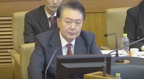 이날 피청구인 신분으로 변론에 출석한 윤 대통령은 “이번 사건이 다른 형사 범죄 사건과는 다르지만 일반적으론 실제 일어난 일, 예를 들면 정치인을 체포했다거나 누구를 끌어냈다거나 하는 일이 있었을 때 이러한 일의 경위를 수사나 재판 과정에서 얘기한다”고 했다. 이어 “그런데 이번 사건을 보면 실제 아무런 일도 일어나지 않았는데 지시를 했니 받았니 하는 얘기들이 마치 호수 위에 떠있는 달그림자 같은 걸 쫓는 느낌”이라고 했다.