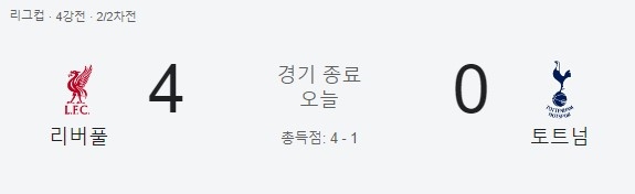 손흥민(33)의 토트넘이 7일(한국 시각) 영국 리버풀의 안필드에서 열린 2024~25 잉글랜드 카라바오컵(리그컵) 준결승 2차전에서 리버풀에 0-4로 완패했다.