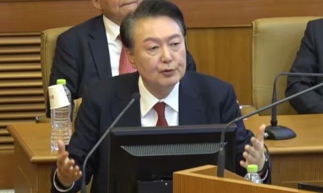 윤석열 대통령이 지난 6일 서울 종로구 헌법재판소에서 열린 탄핵 심판 6차 변론기일에서 발언하고 있다. 헌재
