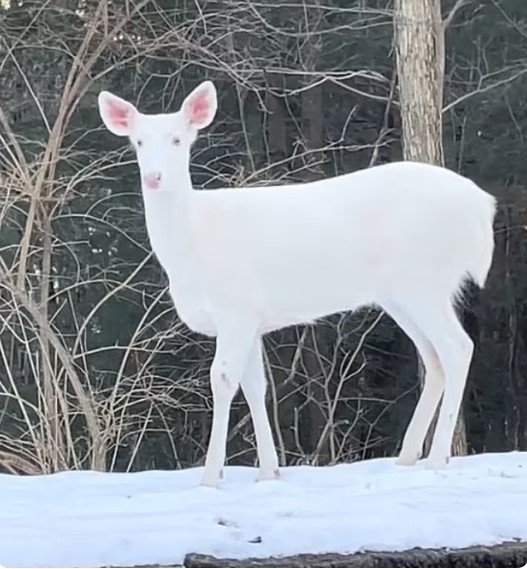 보기가 무척 어려운 알비노(백색증) 사슴이 포착돼 온라인에서 화제가 되고 있다. '행운의 상징'으로 알려져 있다.