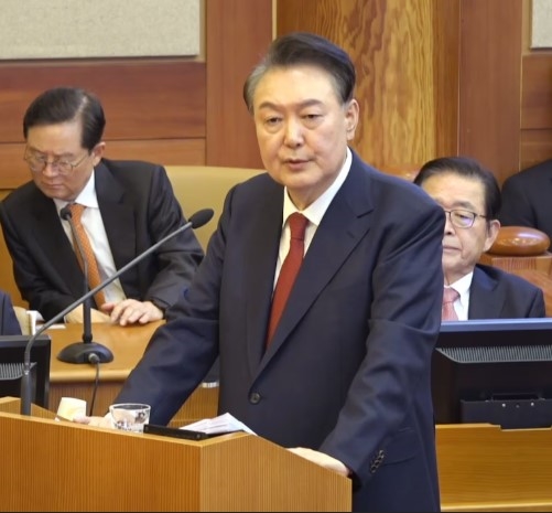 윤석열 대통령은 25일 헌법재판소에서 진행된 탄핵 심판 사건 최종 변론에서 12·3 비상계엄 선포 배경에 대해 “거대 야당이 줄탄핵, 입법 폭주, 예산 폭거로 정부의 기능을 마비시켜 왔다”며 “정치적 목적을 위해 정부 기능을 마비시키는 데 권한을 악용한다면 이는 헌정 질서를 붕괴시키는 국헌 문란”이라고 밝혔다.