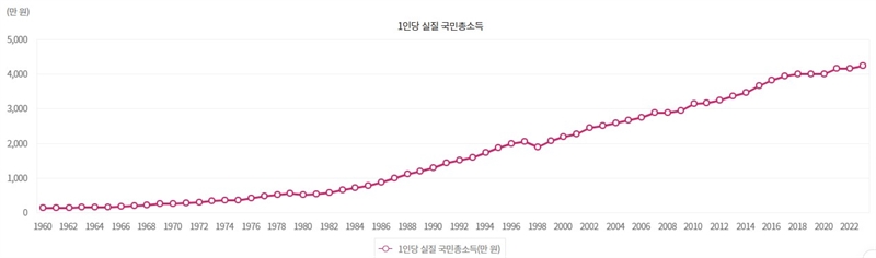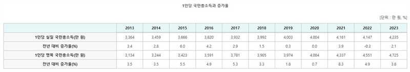 GNI는 원화 기준으로 4995만 5000원으로 전년도 4724만 8000원보다 5.7% 많았다.
