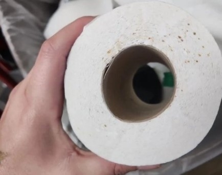 누리꾼이 올린 영상을 보면 휴지에 갈색과 녹색 등 얼룩덜룩한 자국이 남아있으며 휴지 곳곳이 움푹 패여 있다.
