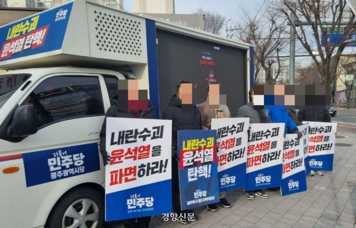 민주당 광주북구을지역위원회 소속 당원들이 지난달 윤석열 대통령의 파면을 촉구하는 시위를 하고 있다. 민주당 광주시당 홈페이지