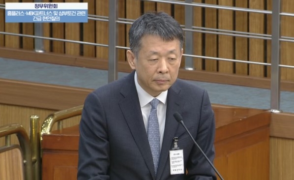 김광일 MBK파트너스 부회장 겸 홈플러스 공동대표가 지난 18일 열린 국회 정무위원회 현안질의에 참석해 있다. 국회방송