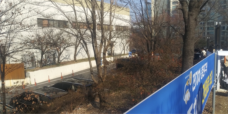 공연을 끝낸 가수가 차량을 타고 나올 아레나 건물 지하 입출구 모습.
