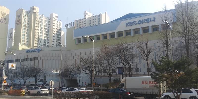 김포공항 가는 대로변에서 찍은 KBS아레나 건물 모습. 바로 옆엔 KBS스포츠월드 입간판도 걸려 있다. 옛날엔 88체육관이란 이름으로 스포츠 프로그램이 운영됐었다. 이상 정기홍 기자