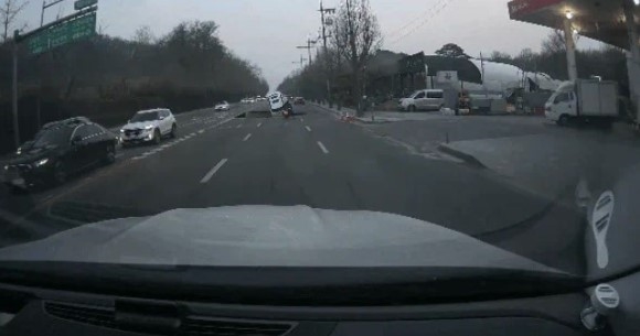 허 씨 차량 뒤에 따라오던 오토바이 운전자는 그대로 구덩이에 빠졌다.