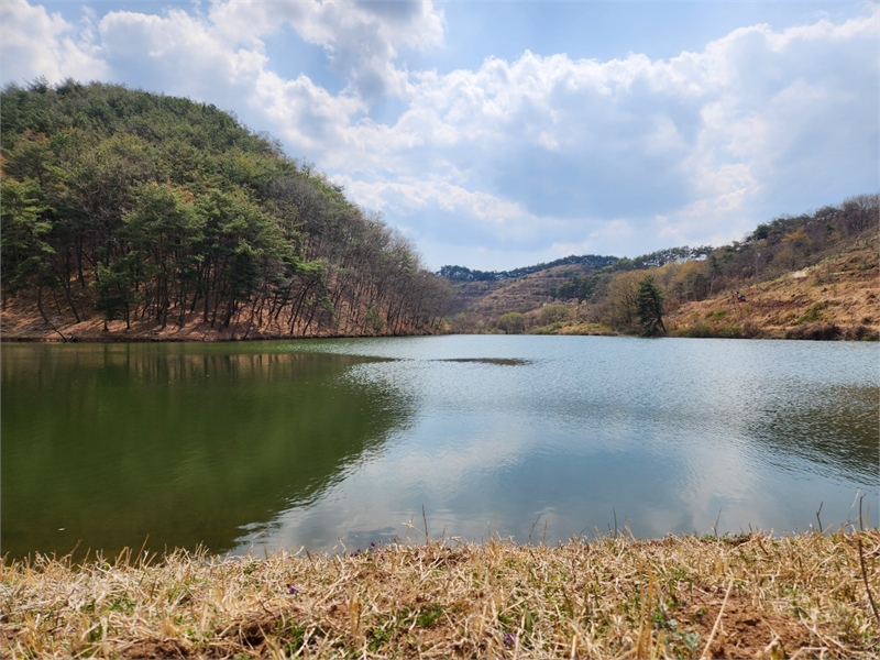 '하늘이 맑다'는 절기 '청명'인 4일 경남 진주시의 한 저수지 주변의 정취. 못둑엔 지난 늦가을 말라 퇴락한 풀잎 사이로 파릇한 싹들이 돋아나고 있다. 가득한 저수지 물 위로는 뭉개구름이 떠 있다. 청명과 다음 날 한식은 '손 없는 날'로 인식돼 조상의 산소를 찾아 돌본다. 5일은 식목일이기도 하다. 정창현 기자