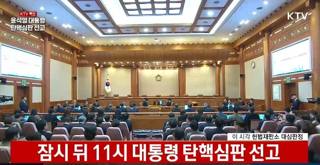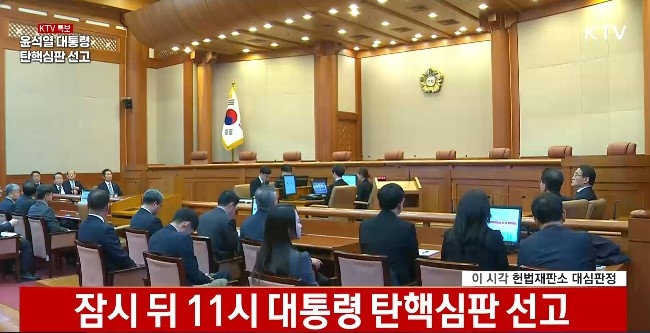 윤석열 대통령이 4일 헌법재판소 헌법재판관 8명 전원일치로 파면됐다. 탄핵 결정의 긴박했던 순간을 짚어본다. 'KTV' 중계방송 도움을 받았다. ▶선고 직전 이상 KTV 중계 캡처 2 0 사이렌스 임지연 bonnylim@naver.com 임지연의 기사 더보기 저작권자 ⓒ 사이렌스. 무단 전재 및 재배포 금지