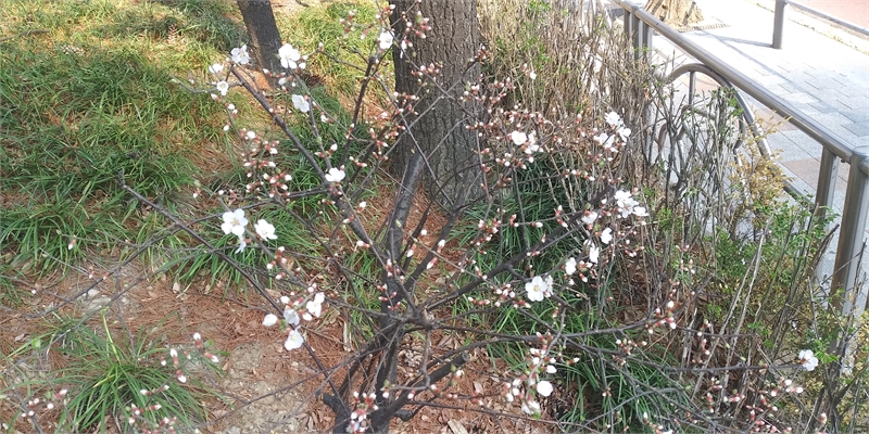아파트 작은 화단에 소담스라운 앵두꽃이 피어나고 있다. 평소 보잘 것 없어 보이던 공간이 비집고 나오는 꽃잎들로 환해지고 있다.