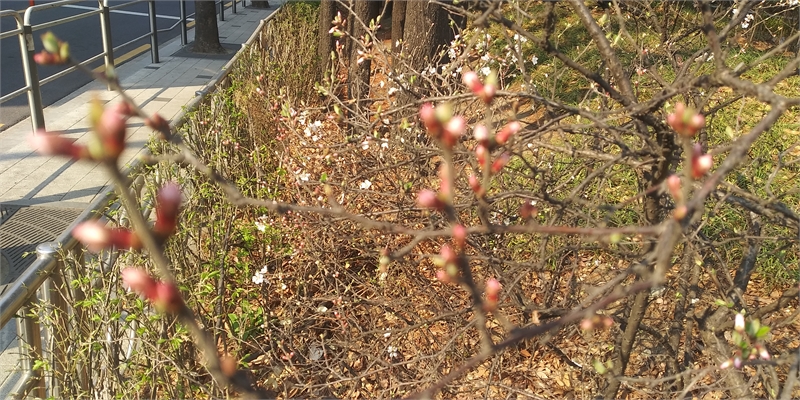 꽃은 봉오리를 만들고, 꽃잎을 돋우고, 화사해집니다. 도심 길섶의 봄을 기록합니다.