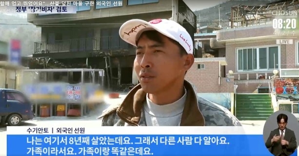 지난달 222일 경북 의성군에서 시작된 산불이 25일 경북 영덕군 해안마을을 덮쳤을 때 마을 어르신을 피신시킨 인도네시아 국적 3명이 장기 거주 자격을 받았다.