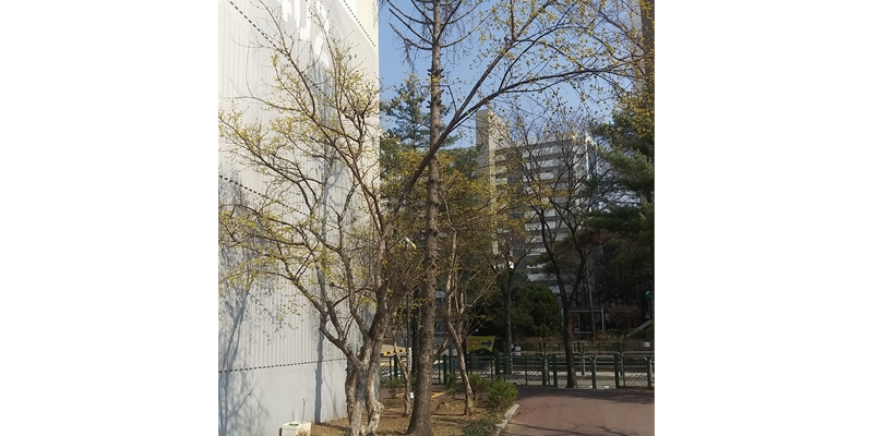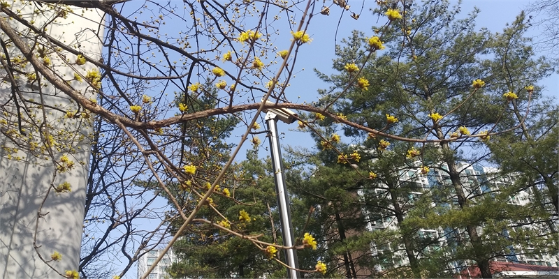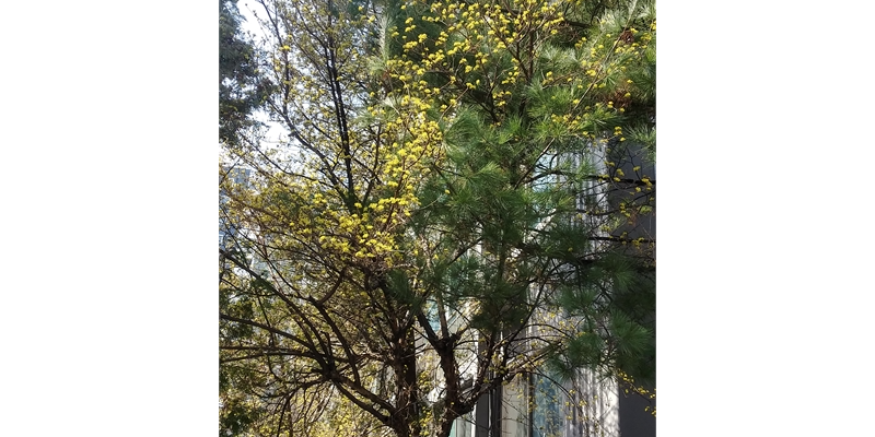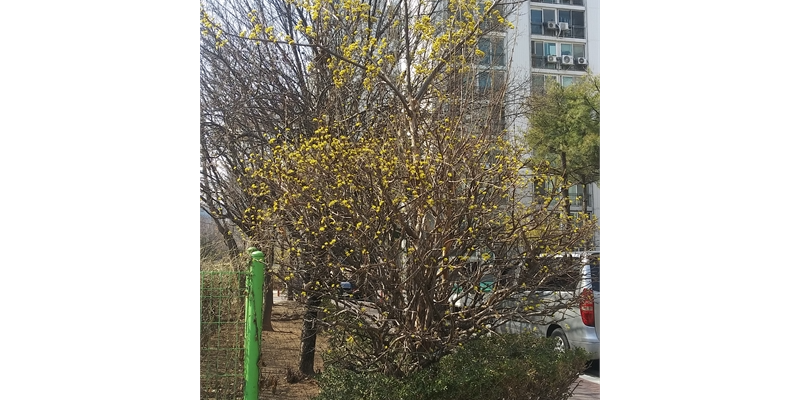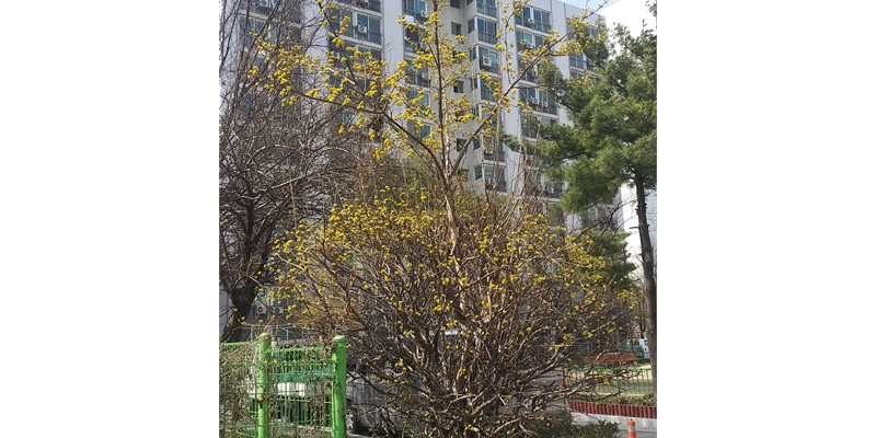 7일 서울 강서구의 한 아파트 단지를 산책하다가 찍은 산수유꽃의 정취입니다.