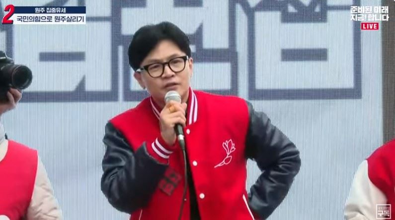 한동훈 국민의힘 비대위원장이 강원 원주에서 유세를 하고 있다. 국민의힘TV