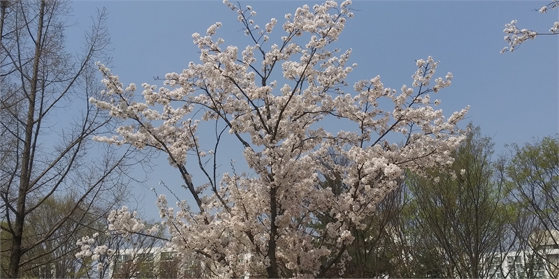 활짝 핀 벚꽃이 푸른 하늘과 어우러져 봄날의 정취가 물씬 나고 있다.