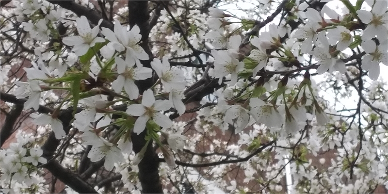 벚나무엔 순백의 꽃과 잎이 혼재돼 있다.