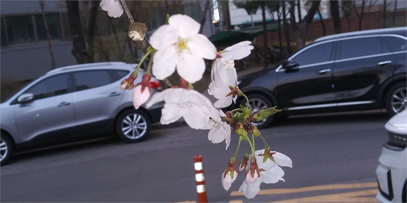 하지만 아직도 자태를 한껏 뽐내는 벚꽃. 개화한 지 하루 이틀 정도 된 듯하다.