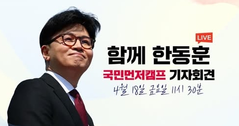 한동훈 국민의힘 대선 경선 후보가 18일 서울 여의도 선거 사무소에서 캠프 인선 등 현안 관련 기자회견을 하고 있다.