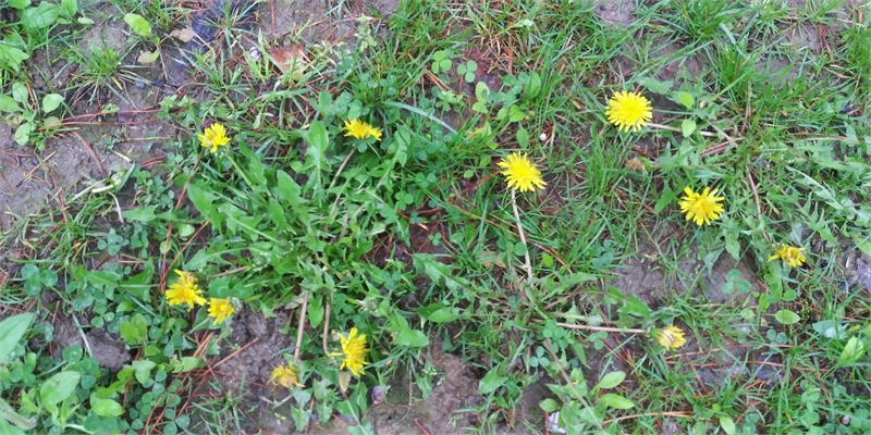 도로가의 작은 귀퉁이에 누가 보든 안 보든 피어 자리를 지키는 민들레꽃. 생명력이 강한 야생화 모습이다.