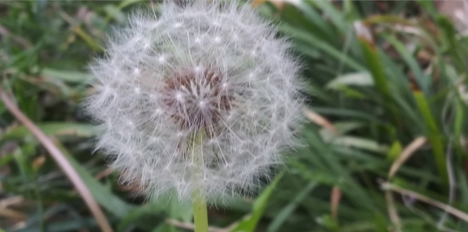 이번엔 민초 같은 꽃 민들레입니다. 한창 노란 자태를 뽐내는 꽃도 있지만 지는 꽃도 있습니다. 홀씨가 된 녀석도 보입니다. 잘 알려진 민들레홀씨입니다.