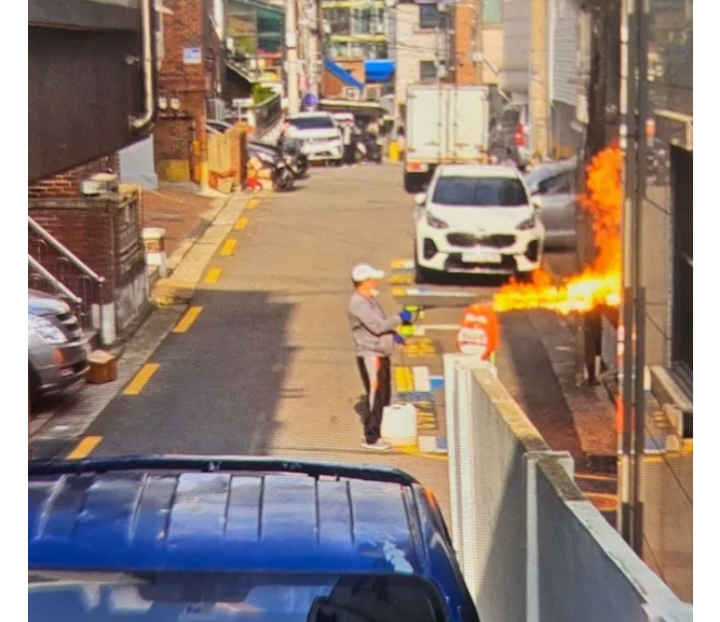 21일 오전 서울 관악구에서 60대 남성이 농약살포기로 주택에 불을 지르고 있다. 이 남성은 인근 아파트에도 농약살포기로 불을 질렀고 아파트 복도에서 사망한 채 발견됐다. 온라인 커뮤니티