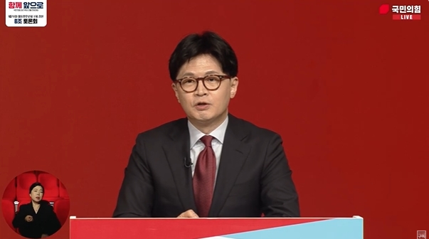20일 진행된 국민의힘 대선 경선 B조 토론회에서 한동훈 후보(전 대표)가 마무리 발언을 히고 있다. 국민의힘TV