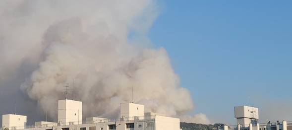 산림청은 28일 오후 2시 1분쯤 대구 북구 함지산에서 발생한 산불이 바람을 타고 확산, 연기가 도심으로 이동하자 산불 대응 3단계로 상향 발령했다.