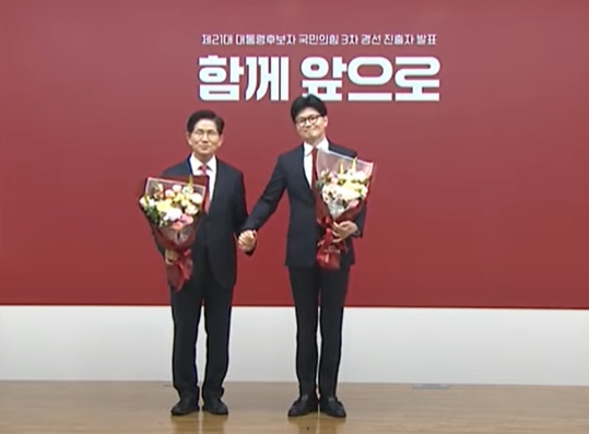 국민의힘 제21대 대통령 선거 최종 경선에 김문수·한동훈 후보(가나 순)가 진출했다. 안철수·홍준표 후보는 탈락했다.