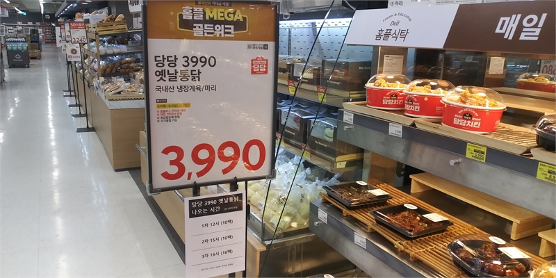 홈플러스는 지난 2022년 6월 한 마리에 6990원짜리 치킨을 전격 출시, 당시 한 마리에 3만 원대를 언급하던 프랜차이즈 치킨 업계를 바짝 긴장시켰지요. 이마트, 롯데마트도 어쩔 수 없이 저가 치킨 출시에 동참했을 정도였습니다.