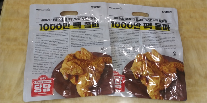 홈플러스의 당당치킨은 '당일 튀겨서 당일 판다'는 의미로, 당당하다는 뜻도 담고 있다고 합니다.